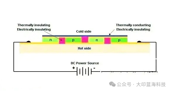 TEC(Thermoelectric Cooler),也被称为半导体制冷片,在众多设备中发挥着关键的温度控制作用。其基本工作原理源于 珀耳帖效应,这是一种热电效应,表现为金属接触点处的一侧吸热而另一侧放热。由于纯金属的热电效应相对较小,因此在实际应用中,我们通常采用半导体材料来显著增强这一效应。通过改变电流的方向,可以轻松切换TEC的冷热面,这本质上是在外加电场的作用下,利用电子流将内能从一侧转移到另一侧的过程。