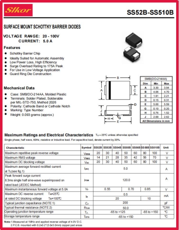 ITB8888通博Slkor肖特基二极管SS56B规格书