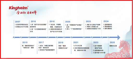2007年,宋仕强先生创立金航标kinghelm电子(www.kinghelm.com.cn),公司总部位于深圳,专注于射频(RF)产品和北斗卫星导航技术。早期公司成功研发北斗GPS天线射频连接器等,并原始获得“北斗导航定位”产品的发明专利,依靠自主研发奠定了在射频和微波技术和相关产品方面坚实的技术基础,参与了“两客一危”项目。