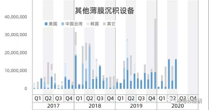 其它成膜设备的进口量很少,同期只有4.8亿美金,且金额数值起伏变化剧烈,参考价值不大